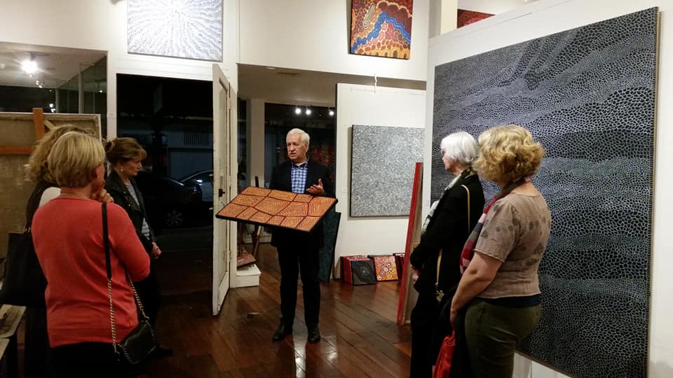 SWEA Perth fick en exklusiv kväll på Japingka Gallery med intressanta och underhållande berättelser från ägarna Ian Plunkett och David Wroth om hur de började sin bana inom aboriginsk konst och deras affärssätt – vikten av att sälja konst som är autentisk och som följer en ”code of conduct”.
