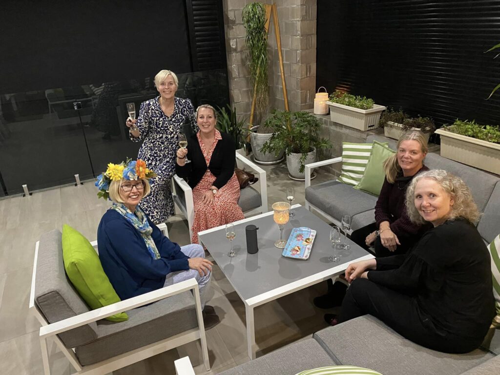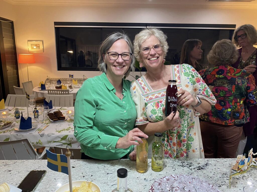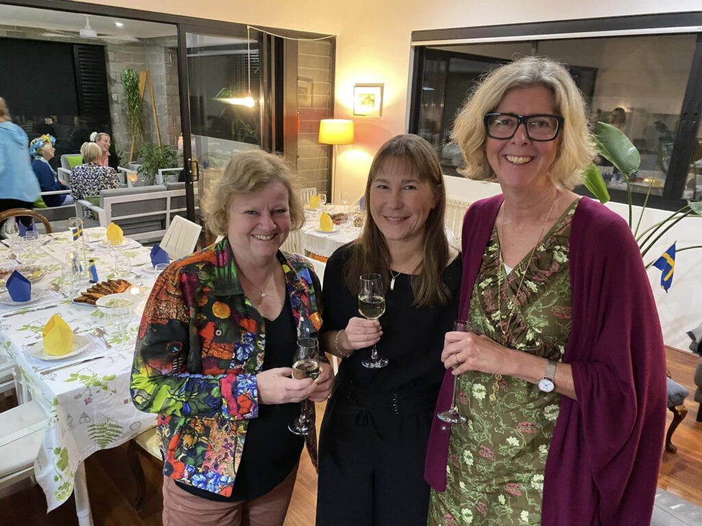 Traditionsenligt midsommarfirande, denna gång hemma hos Elisabeth. Marie och Kristina stod för planering och matlagning.