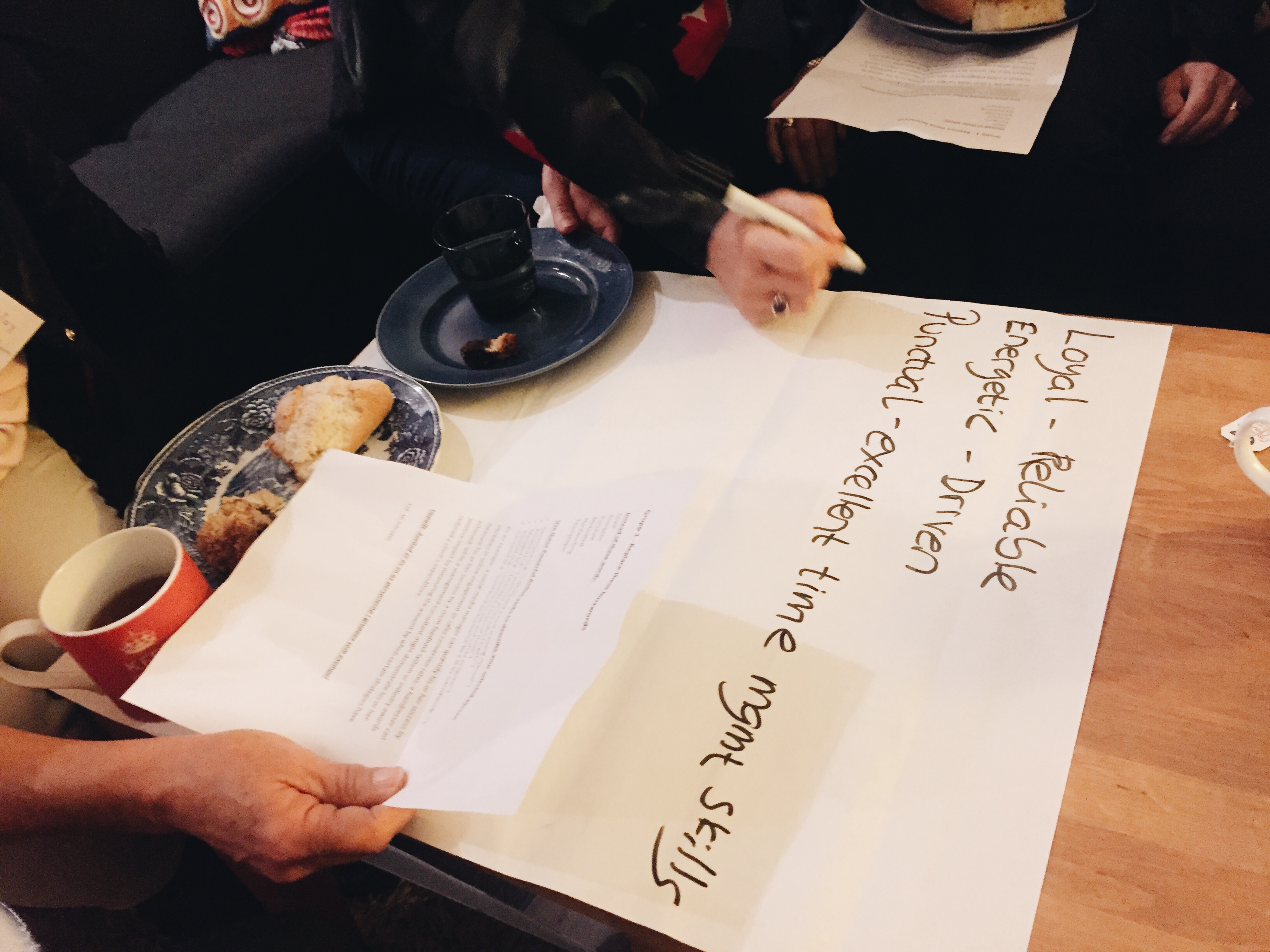 Över vår kopp te och goda smörgås fick vi i grupper diskutera CV och ”Buzz Words”, vad är bra att tänka på och hur ser en bra CV ut, var några av frågorna som diskuterades.