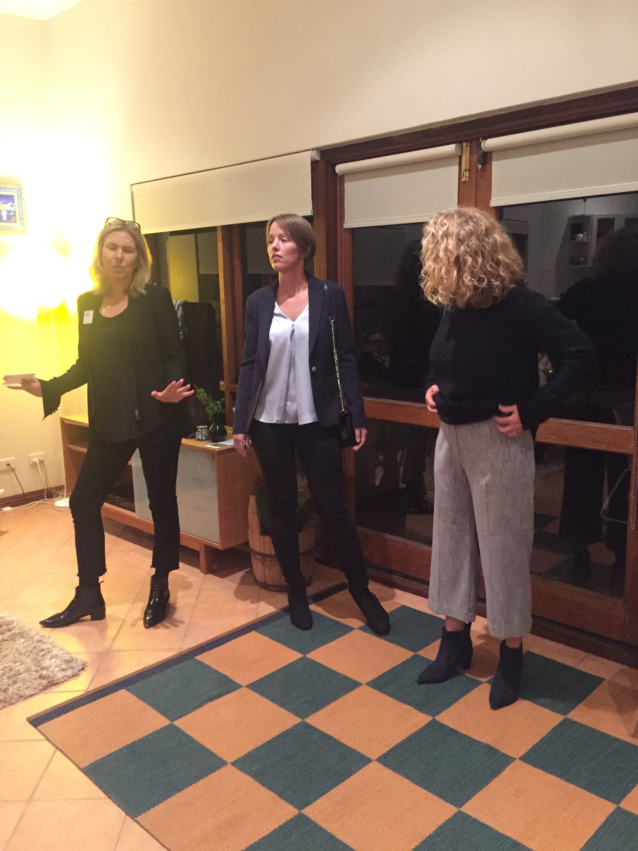 Avslutningsvis hade vi Erika, som är stylist på David Jones på Hay Street, som gav tips på klädval inför jobbintervju och visade upp några exempel på stilar. Fem punkter som Erika tog upp var att (1) ha snygga skor som man känner lyfter outfiten – sneakers är bra nästan jämt, men inte på en intervju, (2)tänk på passform (3) välj outfit efter branch (4)man kan ha blått med svart och slutligen (5) en bra foundation är värd att investera i. Att boka in en tid hos en stylist kan vara ett bra sätt att utveckla en basgarderob med många användningsområden.